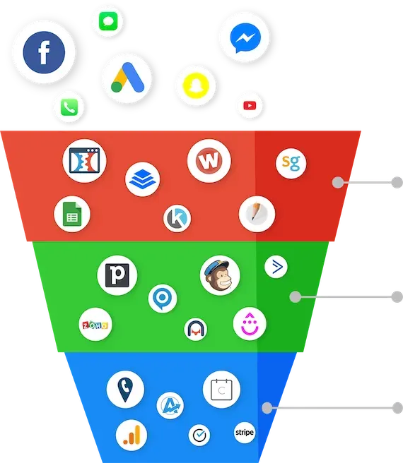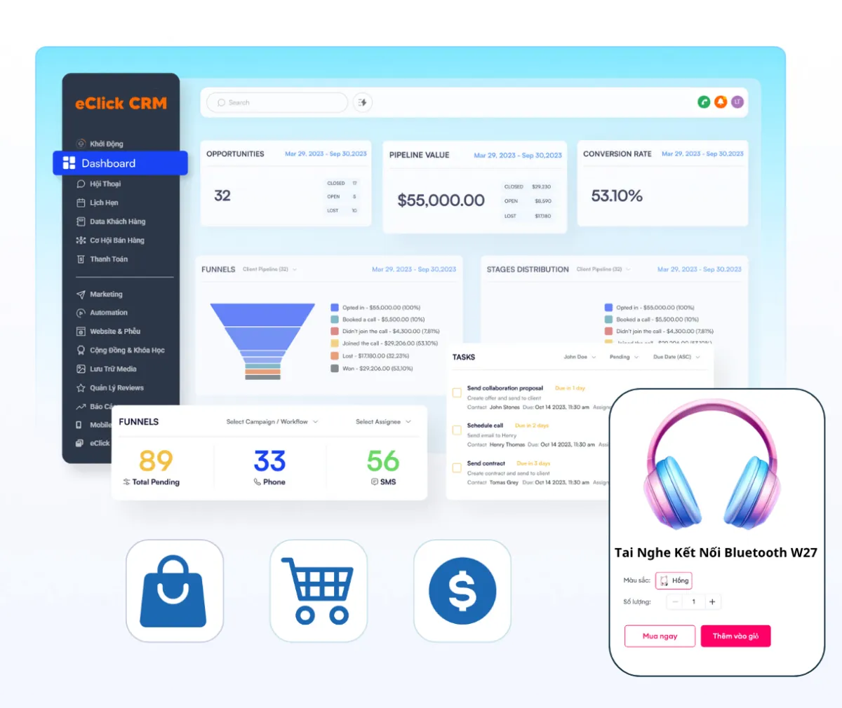 Quên đi cảnh phải "vá víu" 5-6 công cụ. Lần đầu tiên, CRM, Phễu và Email Marketing được hợp nhất làm một ngay bên trong website của bạn.