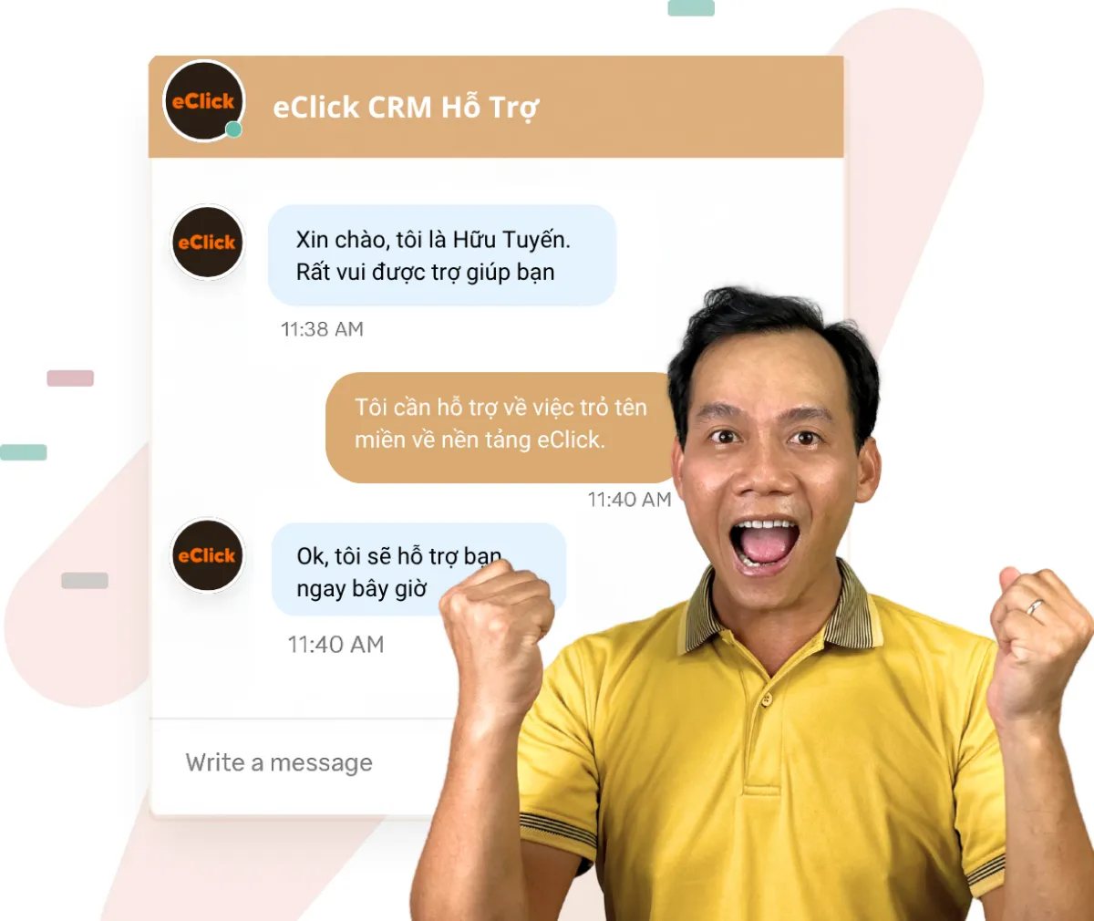 “eClick CRM không chỉ giúp bạn làm website. Nó giúp bạn xây dựng lại hệ thống kinh doanh, theo cách khiến bạn có thể trở lại với chính cuộc sống mình mơ ước.” — Lê Hữu Tuyến