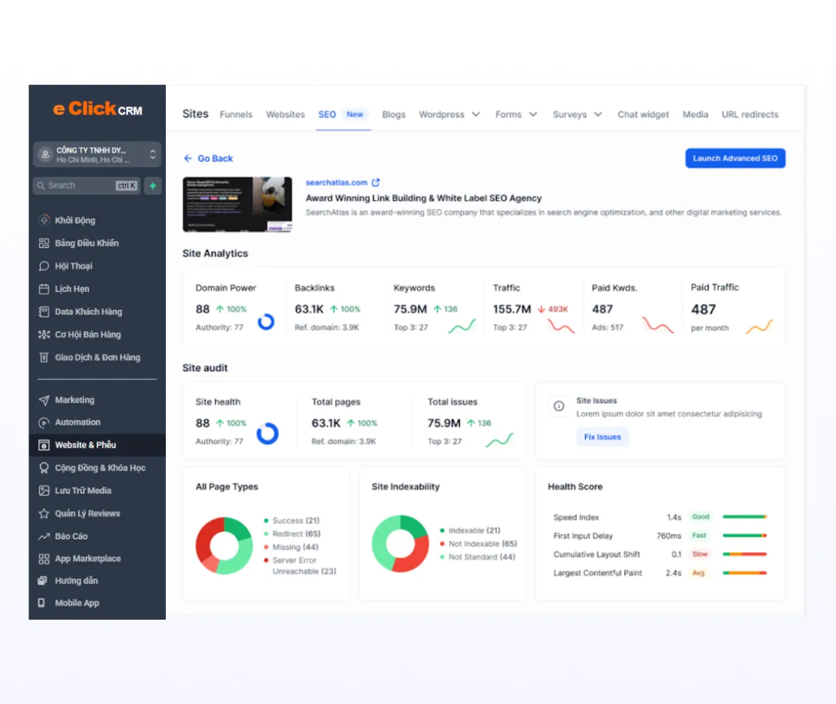 Website mạnh mẽ chỉ là bước đầu. eClick chính là "bộ não" tích hợp sẵn, xóa bỏ sự rời rạc để bạn biến người lạ thành khách quen và quản lý mọi thứ ở một nơi.